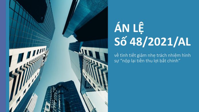 Án lệ số 48/2021/AL về tình tiết giảm nhẹ trách nhiệm hình sự “nộp lại tiền thu lợi bất chính”