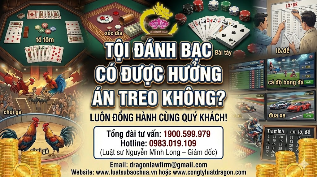 Trên đây là những chia sẻ về điều kiện hưởng án treo đối với tội đánh bạc. Hy vọng sẽ hữu ích với bạn. Nếu còn bất kỳ câu hỏi nào hay đang gặp vướng mắc pháp luật cần tư vấn, vui lòng liên hệ với luật sư của Luật Dragon để được hỗ trợ giải đáp nhanh nhất.