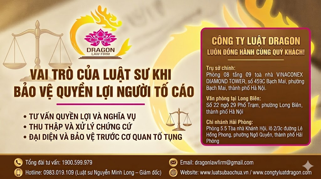 Nếu bạn đang có nhu cầu tố cáo hoặc cần được bảo vệ quyền lợi khi tố cáo, hãy liên hệ với Công ty Luật Dragon để được tư vấn và hỗ trợ tốt nhất.